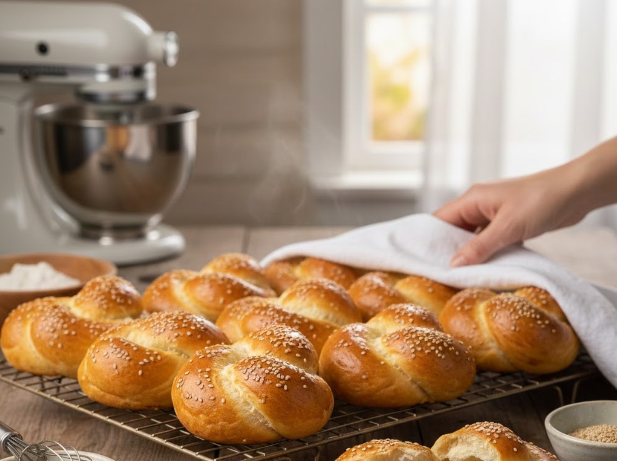 הלחמניות האלו מזכירות את הריח של יום שישי בבוקר. הן יוצאות גבוהות, רכות באופן לא רגיל ושומרות על הטריות שלהן לאורך זמן בזכות טכניקה פשוטה של לישה נכונה והתפחה כפולה.